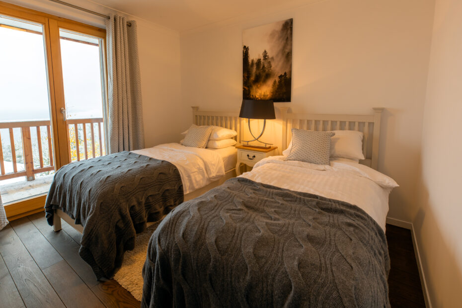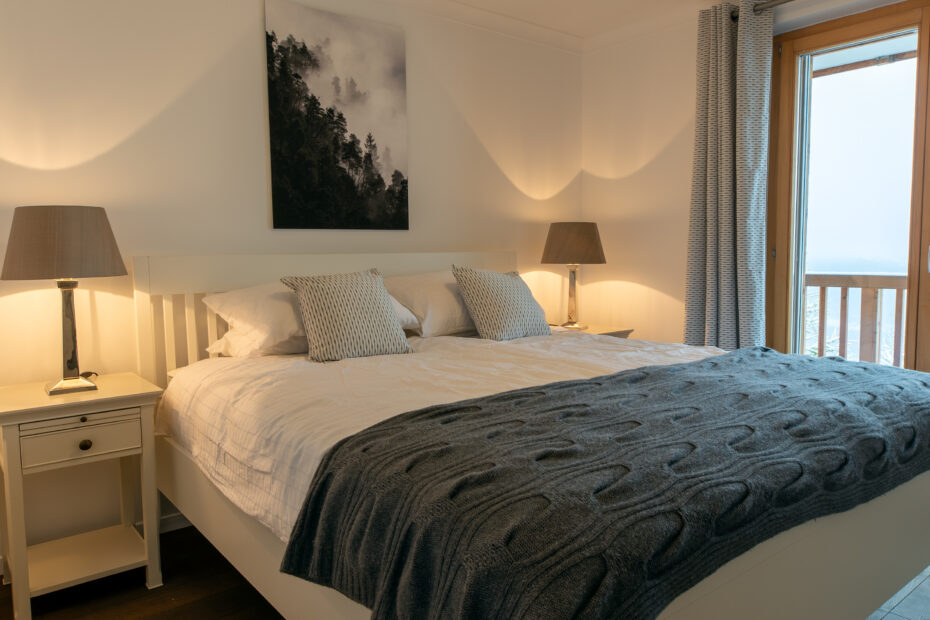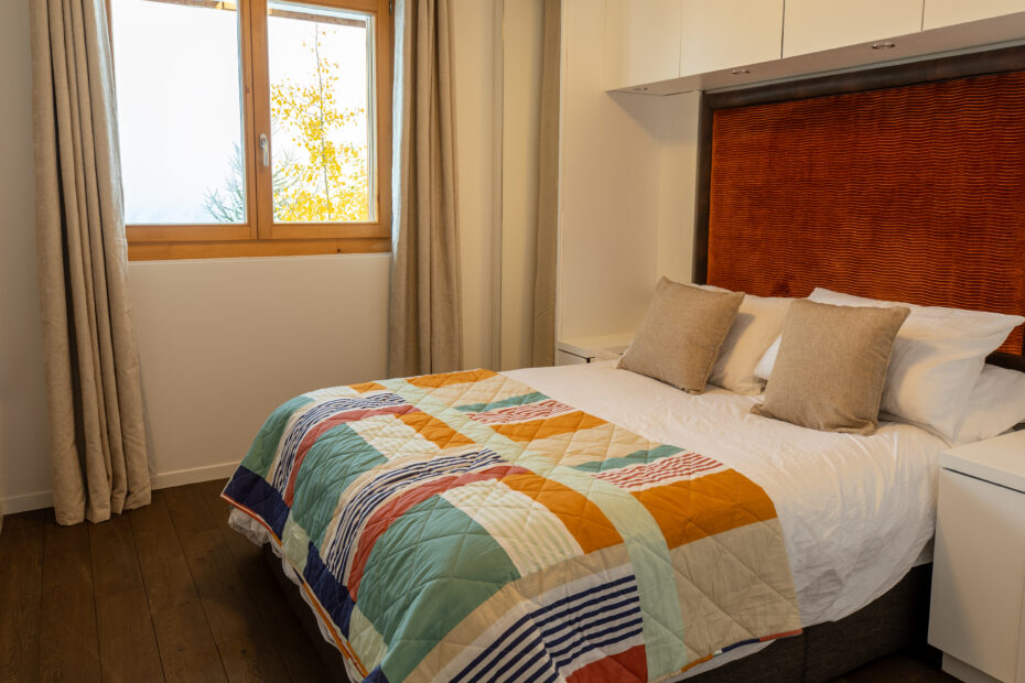 Each room is thoughtfully styled with soft linens, warm textures, and elegant alpine accents to ensure a restful, boutique-hotel level stay.
